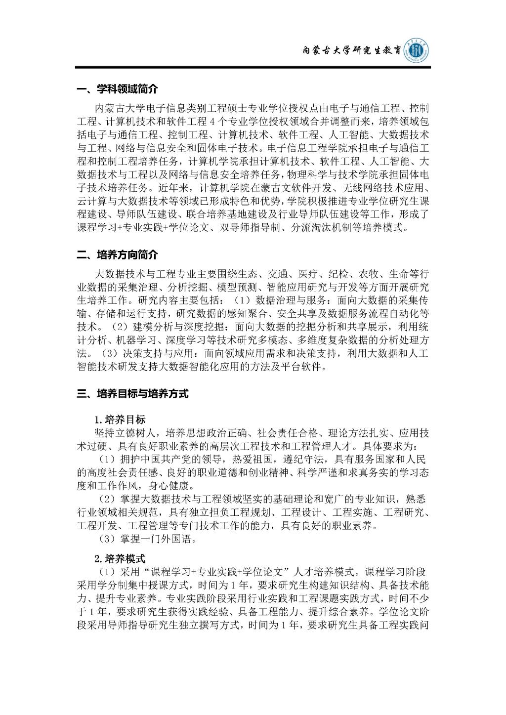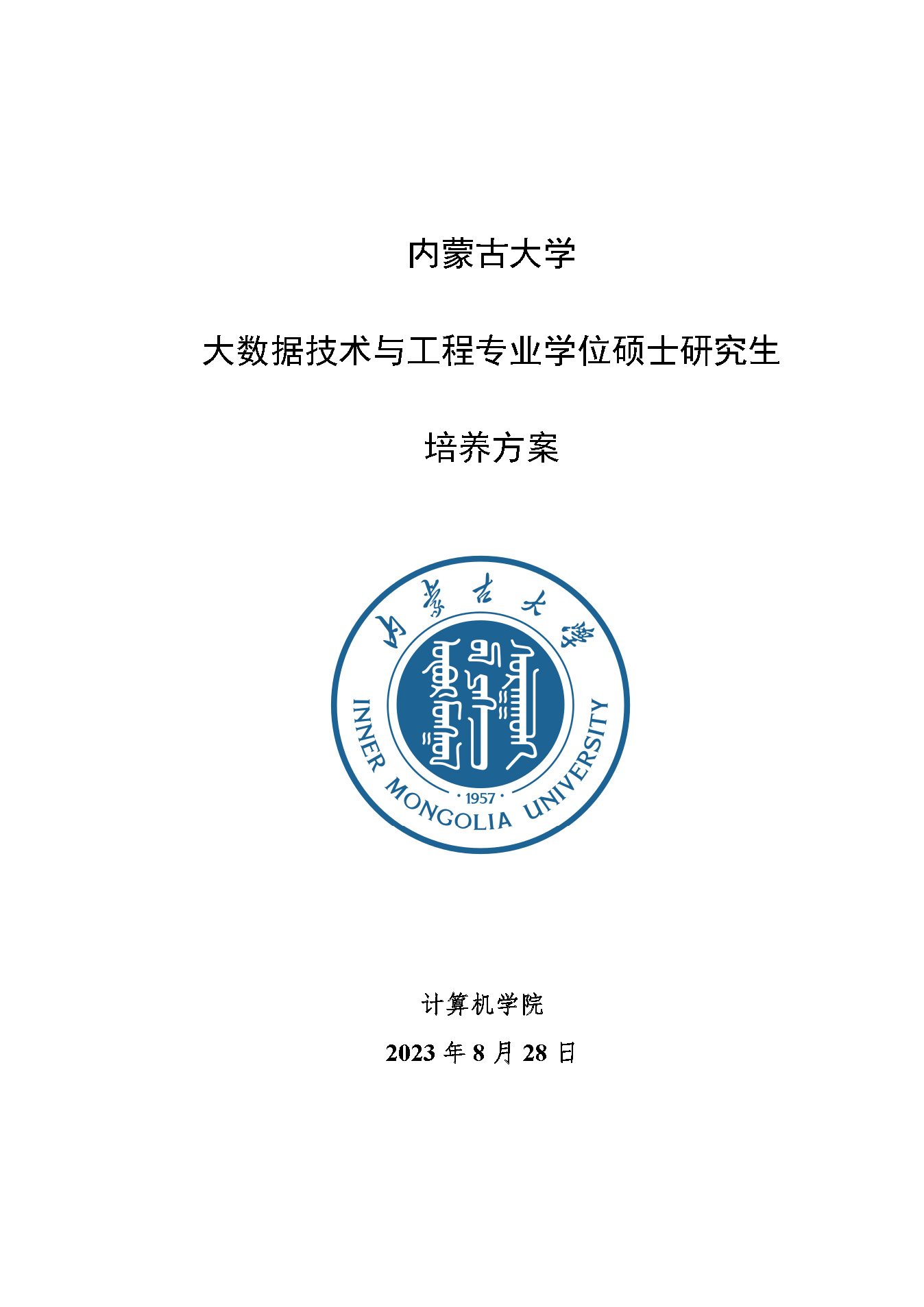 内蒙古大学大数据技术与工程专业学位硕士研究生培养方案