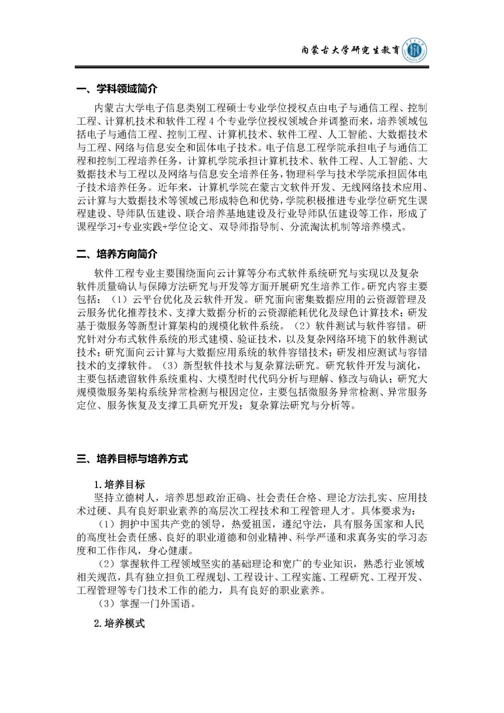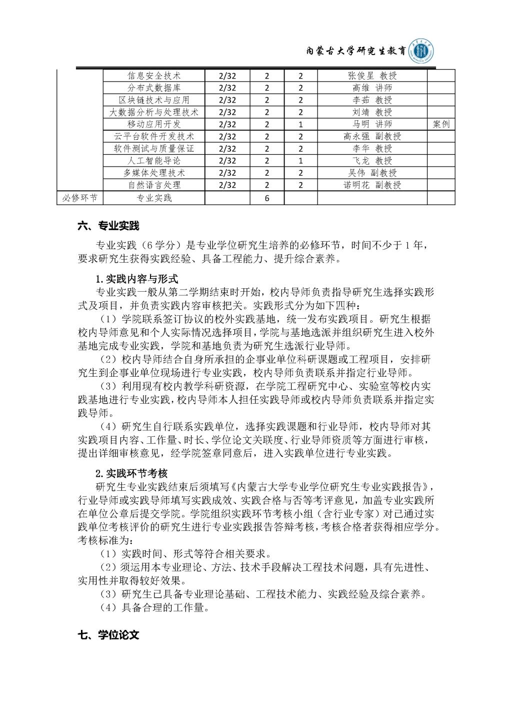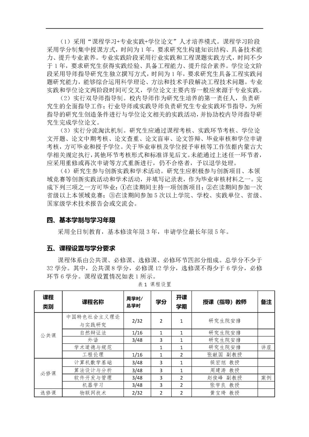 内蒙古大学软件工程专业学位硕士研究生培养方案