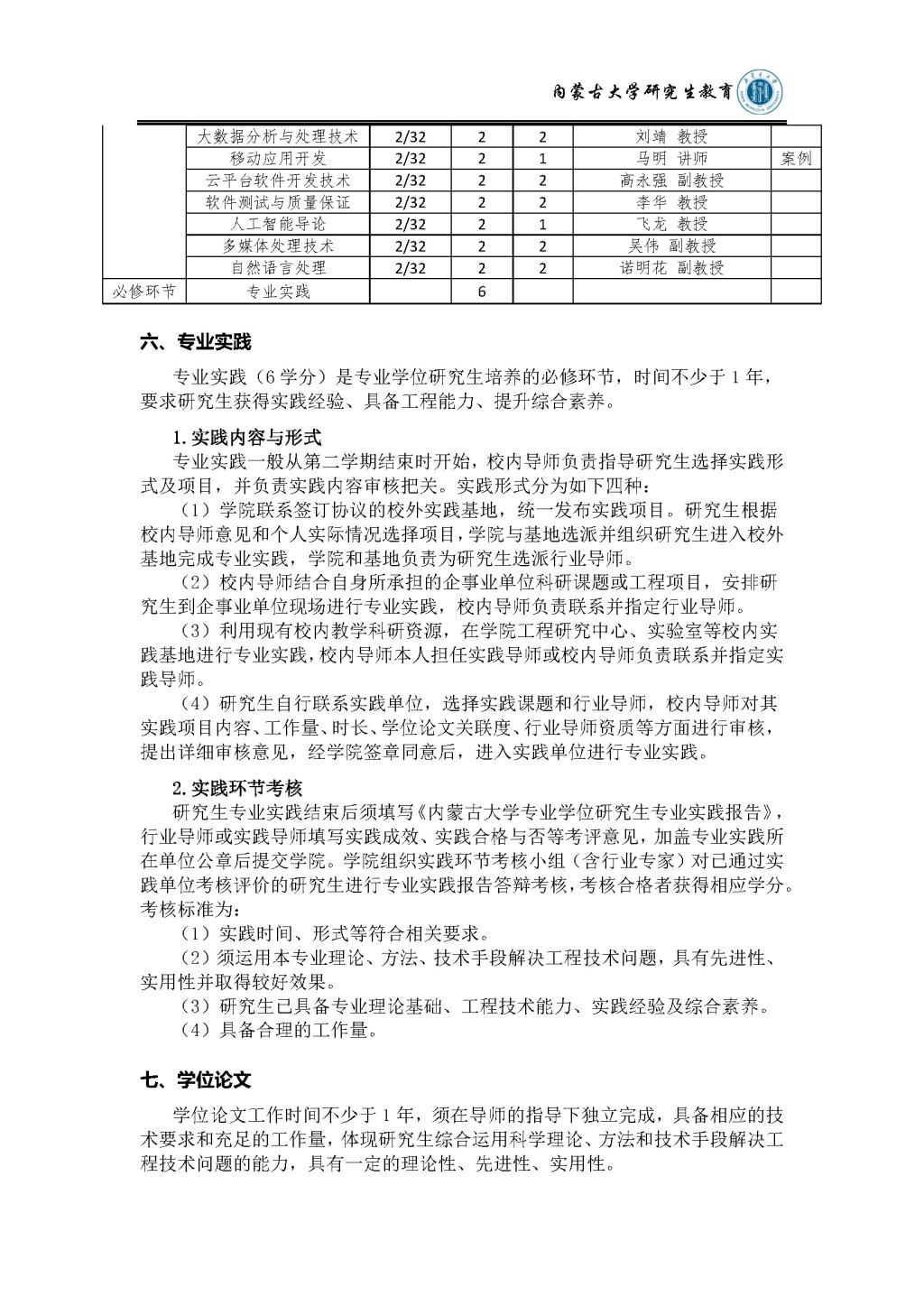内蒙古大学软件工程专业学位硕士研究生培养方案