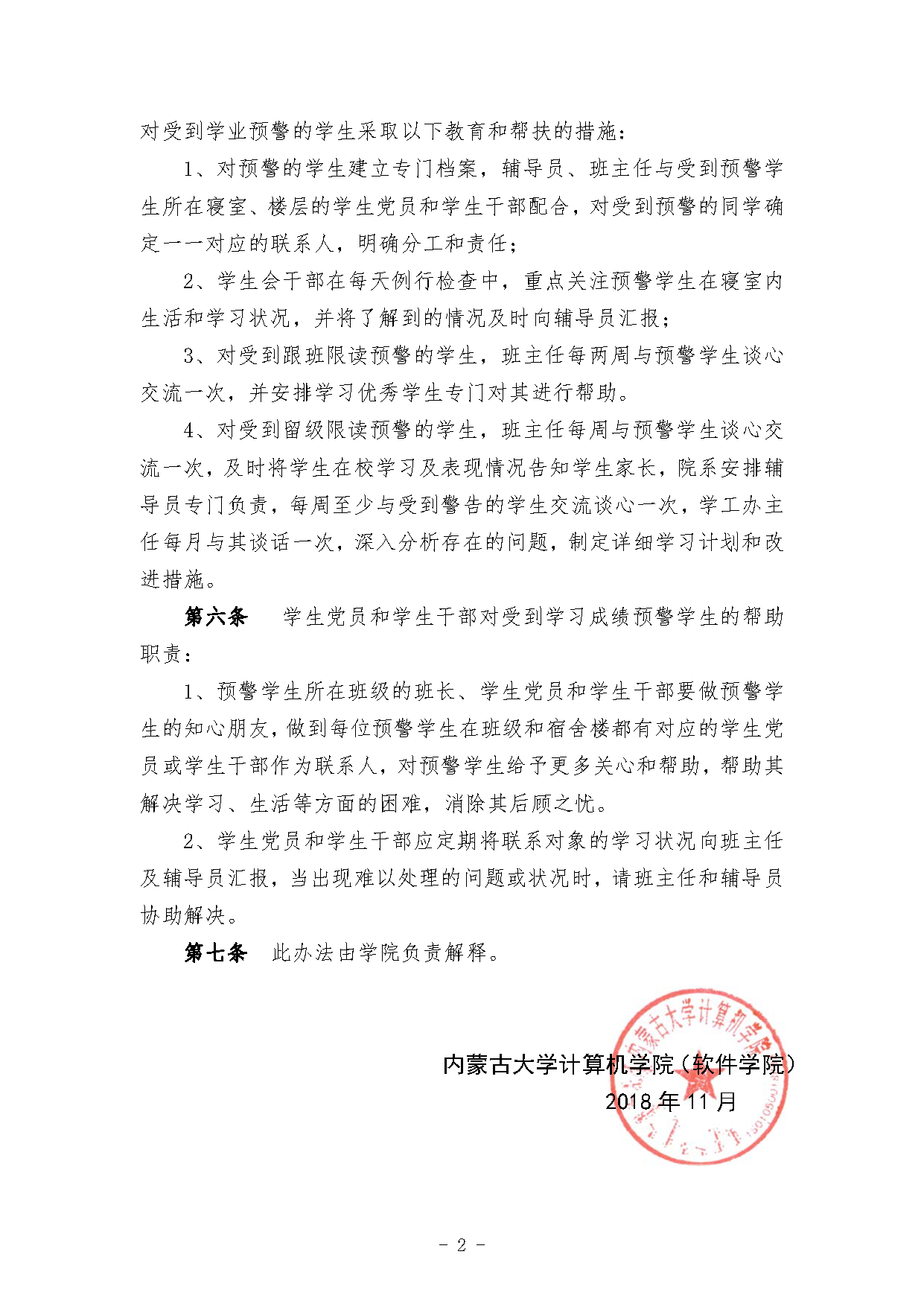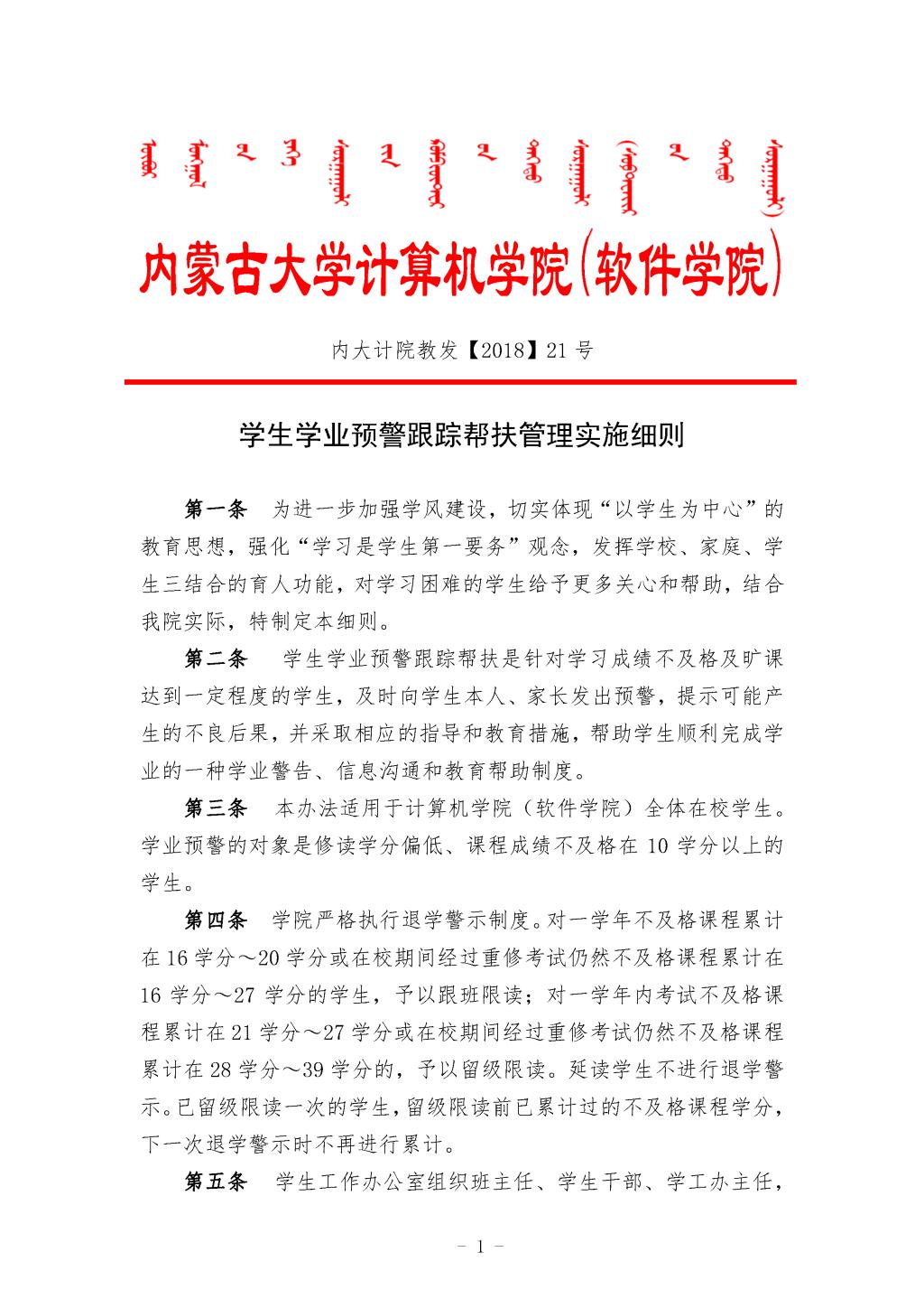 计算机学院(软件学院)学生学业预警跟踪帮扶管理实施细则