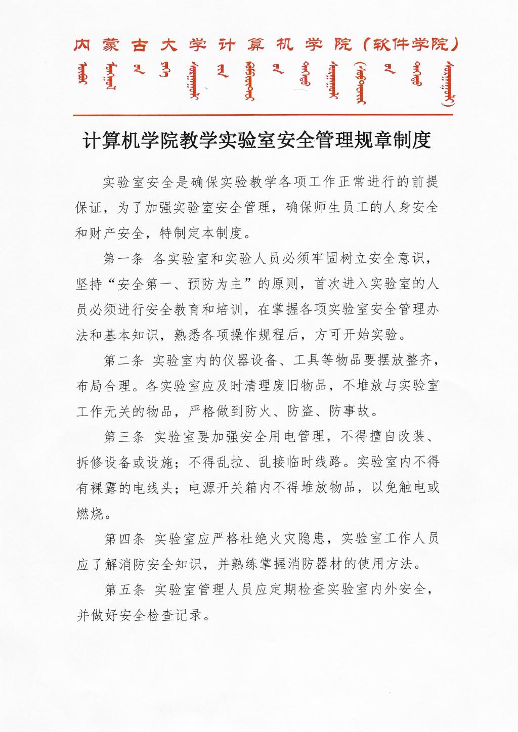 实验室安全管理规章制度