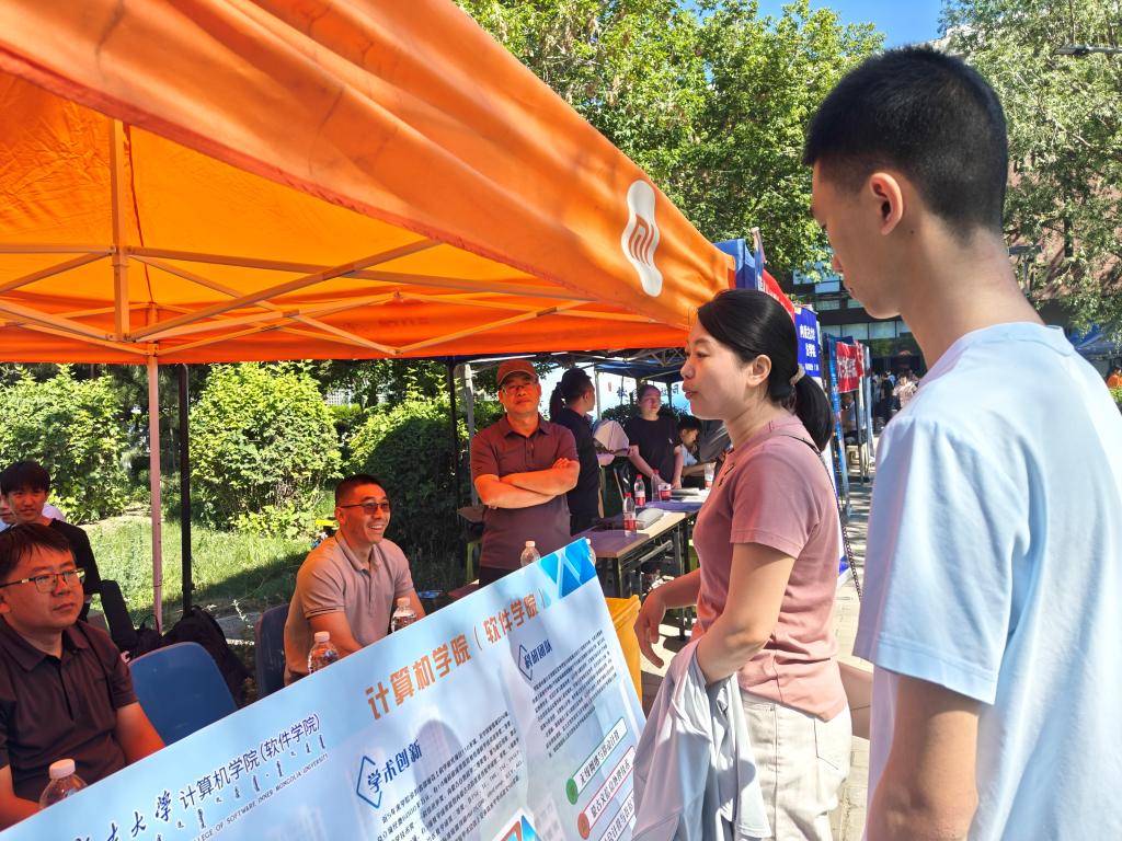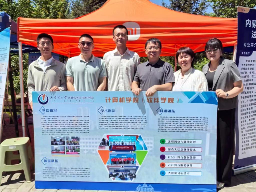 2024年6月16日,学校举办“牢记嘱托,感恩奋进”内蒙古大学第二十一届校园开放日活动,我院由赵俊峰副院长带队,计算机科学系主任吴伟、软件工程系主任高永强、数据科学系主任崔波、教务科研办主任孙一宁、学工办副主任赵琦、辅导员吉雨组成招生宣传团队,在现场与考生面对面解答招生相关问题,介绍学院招生专业、历年录取分数线及专业就业情况,帮助考生、家长准确把握高校招生政策及学院招生专业情况。