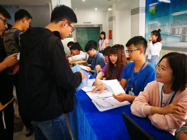 陈国庆校长、高光来副校长、研院常务副院长刘志亮、研院副院长乔宏刚视察报到现场,辅导员李濛老师、教务办各位老师参与新生报到工作。在各级领导、老师和研会志愿者的配合下,新生报到工作圆满完成。