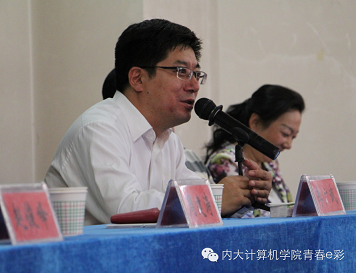 会上,党总支书记李广武就如何过好大学生活作了动员,他简要介绍了内蒙古大学的历史和计算机学院的发展历程,突出强调了继承和发扬优良学风、校风的重要性。李书记以生动形象的事例寄语新同学:一要努力学习,科学规划,确立自己的奋斗目标;二要全面成长,打造自己的精神家园,树立正确的人生观、世界观、价值观;三要阳光生活,积极运动,融入到健康丰富的校园文化生活中。