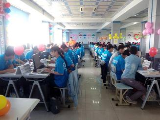 5月25日上午9:00,比赛正式开始。赛场气氛紧张而热烈,234名来自各学校的学子三人一组端坐在78台电脑前,赛场里传来噼里啪啦的键盘敲击声。在长达5小时的激烈比赛中,各大学以团队形式参赛,每队只能使用1台电脑,运用C、C++或Java中的任意一种程序语言编写程序,解决10个问题。最后的获胜者为正确解答题目最多且总用时最少的队伍。经过5个小时的激烈角逐,由乐竞体育(软件学院)的薛嘉宾、李劲东、杨帆组成的“Three Little Pigs”代表队取得个人一等奖;由乐竞体育(软件学院)的王天宇、汪鑫、郭元凯组成的“三人俩2B”代表队,张怀文、钟华、闫永杰组成的“Young For You”取得个人二等奖;由乐竞体育(软件学院)的刚照日格、沈延麒、冯凯鹰组成的“Skyfalls/天落”代表队,田炳霖、宋亚旭、文增宣组成的“Originality”代表队,杜事峰、任伟斌、杜伟刚组成的“The Avengers/复仇者联盟”代表队取得个人三等奖的好成绩。