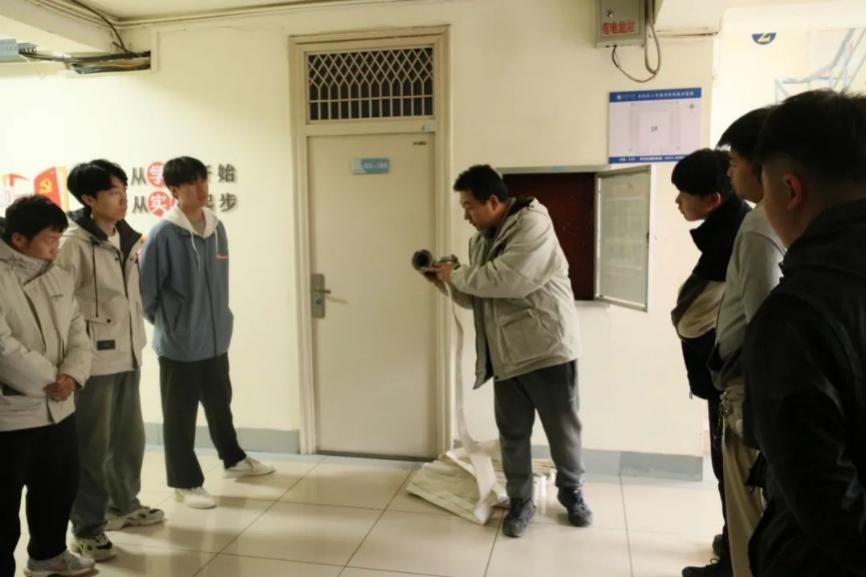 随后,阿思罕老师带领同学们前往宿舍楼内,详细讲解了消防栓的构造、工作原理以及在不同火情下的使用策略,确保每位同学都能充分理解其重要性及操作要领。