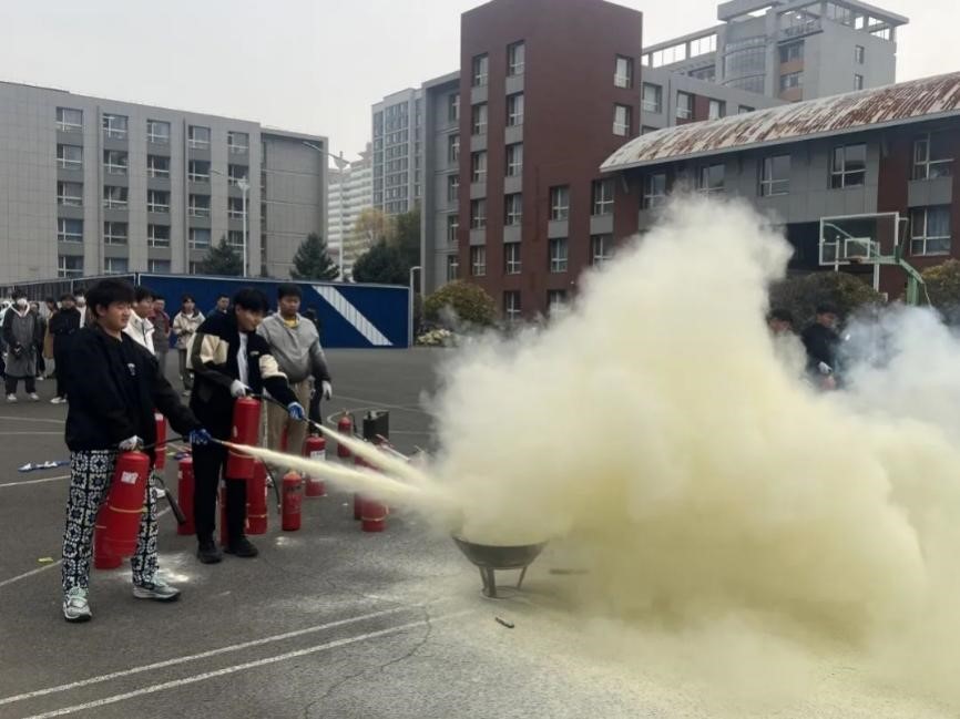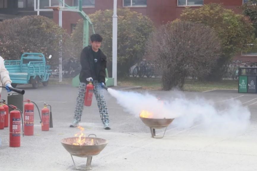 本次活动得到了学校保卫处的全力支持,保卫处消防一科负责人阿思罕老师对各种类型的灭火器进行了详细介绍,并演示了正确的使用方法。同学们在保卫人员的指导下,模拟火灾扑救场景,按照灭火流程规范,分组上阵进行实操演练。随着一次次的“火起”“火灭”,掌握了灭火器的正确使用方法,明晰了火灾发生时应该采取的有效行动。