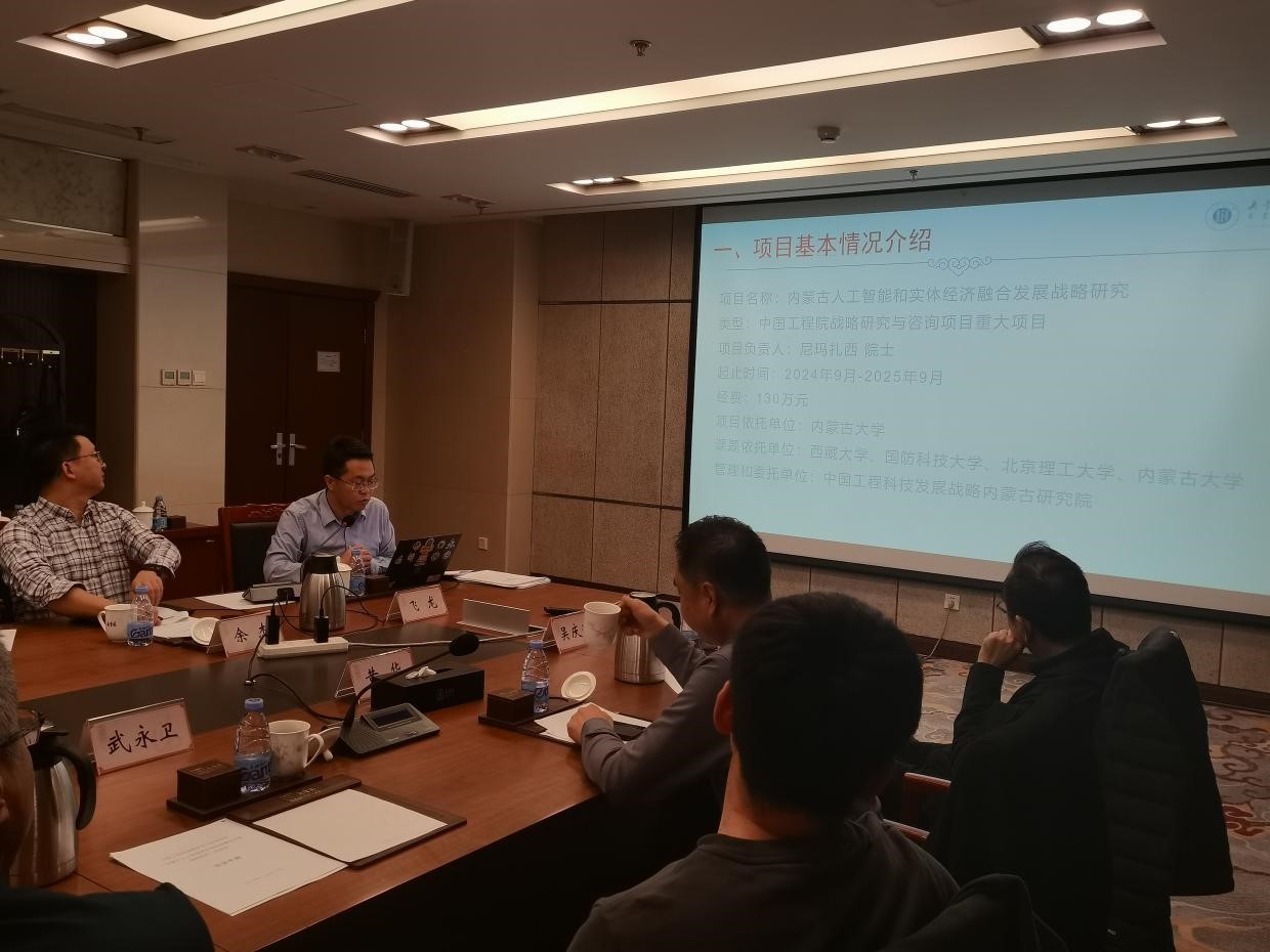 2024年11月5日,中国工程院战略研究与咨询重大项目——“内蒙古人工智能和实体经济融合发展战略研究”启动会在北京召开。中国工程院廖湘科院士、郑纬民院士、尼玛扎西院士、我校原副校长高光来教授、自治区科技厅战略中心主任姜宝林出席会议,清华大学、国防科技大学、电子科技大学、内蒙古大学、西藏大学、北京师范大学、麒麟软件有限公司等国内高校和企业的30多名专家参加会议。