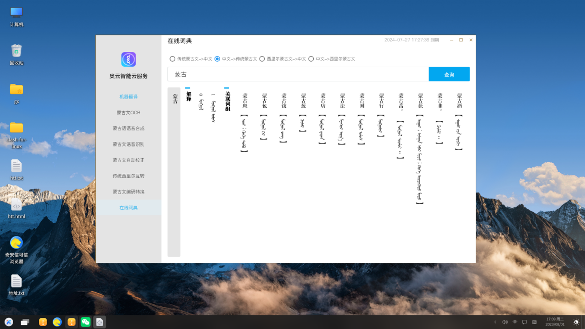获奖项目“面向国产操作系统的蒙古文智能信息处理技术研究及应用”针对蒙古文国产操作系统的研发需求,创新性地提出了多层次自适应多语言翻译构建方法,并设计了智能输入和竖排编辑蒙古文文字处理技术。此外,项目还实现了基于端对端架构的蒙古语语音识别和合成算法,研发了基于语义对齐的民族大语言模型构建技术,成功打造出新一代蒙古文操作系统软件。目前,这些成果已集成至麒麟操作系统主线版本,用户只需简单选择蒙古语,即可轻松切换到蒙古文版本。