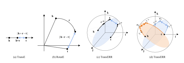本文提出了一种基于翻译的知识图谱补全方法,通过高效的关系旋转TransERR。与以往的基于翻译的模型不同,TransERR在超复数值空间中编码知识图谱,因此使其在挖掘头实体和尾实体之间的潜在信息时拥有更高程度的翻译自由度。为了进一步最小化翻译距离,TransERR适应性地通过它们相应的单位四元数(这些四元数在模型训练中是可学习的)旋转头实体和尾实体。我们还提供数学证明来展示TransERR在建模各种关系模式(包括对称性、反对称性、反转、组合、子关系模式)的能力。 在10个基准数据集上的实验验证了TransERR的有效性和泛化能力。结果还表明,与以往的基于翻译的模型相比,TransERR能够以更少的参数更好地编码大规模数据集。