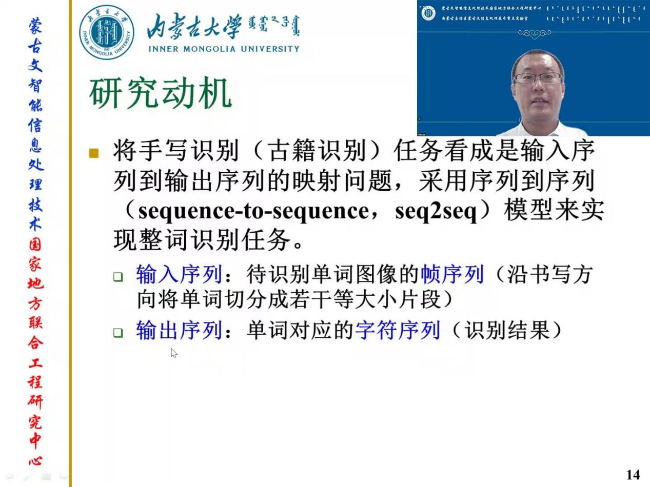 魏宏喜教授分享基于序列到序列模型的蒙古文字识别研究进展
