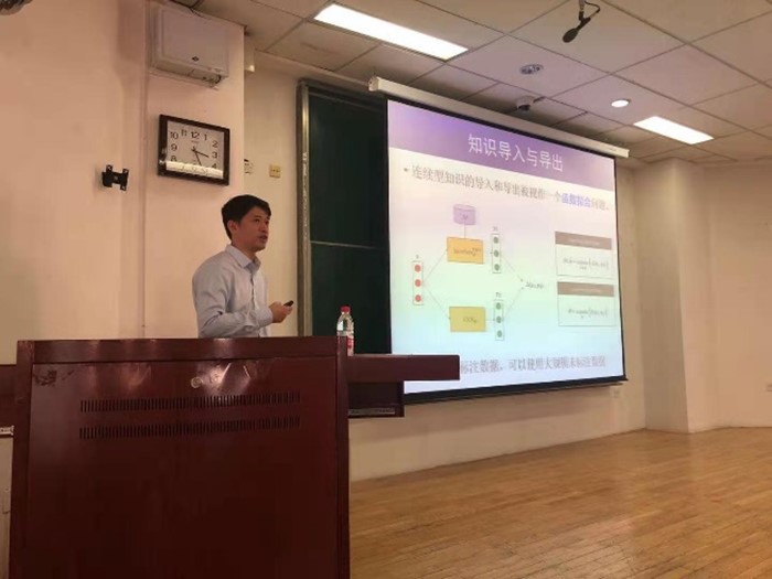 在本次报告中,刘洋教授围绕神经网络从数据中自动获取连续型知识的能力显著增强、能够统一处理多个应用任务的通用模型初显端倪等研究内容,重点介绍了在构建一个通用连续型知识库,将不同任务、不同神经网络模型中蕴含的连续型知识进行集中存储、更新与利用的最新研究进展。目前实验结果表明,将BERT与GPT-2导入通用连续型知识库后能够获得比两者更强的表达能力。会后,师生积极提问,刘洋教授逐一作了详细解答。