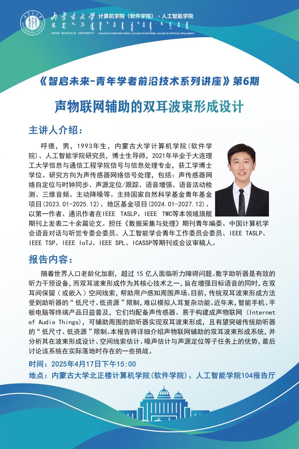 学术讲座预告|《智启未来-青年学者前沿技术系列讲座》第6期