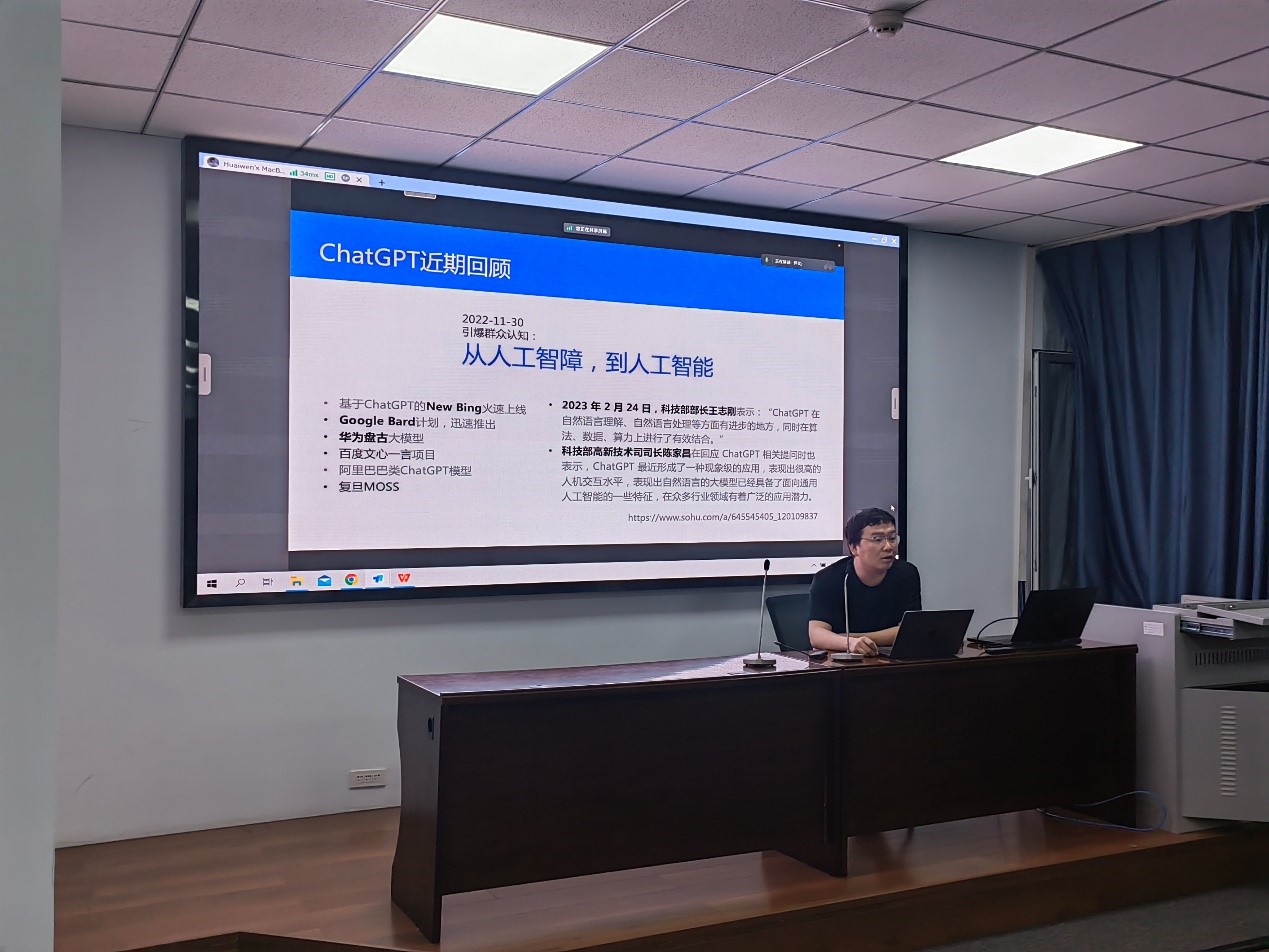 张怀文老师从人工智能领域最前沿、最热门的ChatGPT入手,通过丰富有趣的应用演示,为同学们分析了目前该领域的研究热点,并为同学们给出了学习的建议、指明了创新实践的切入点,鼓励同学们把握智能革命的时机,冲破束缚、积极思考挖掘创新点,勇敢加入到智能革命的浪潮中。