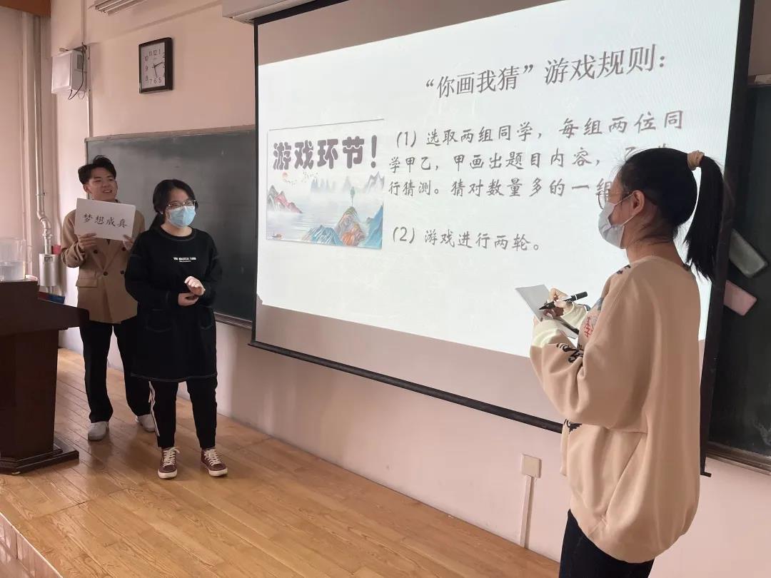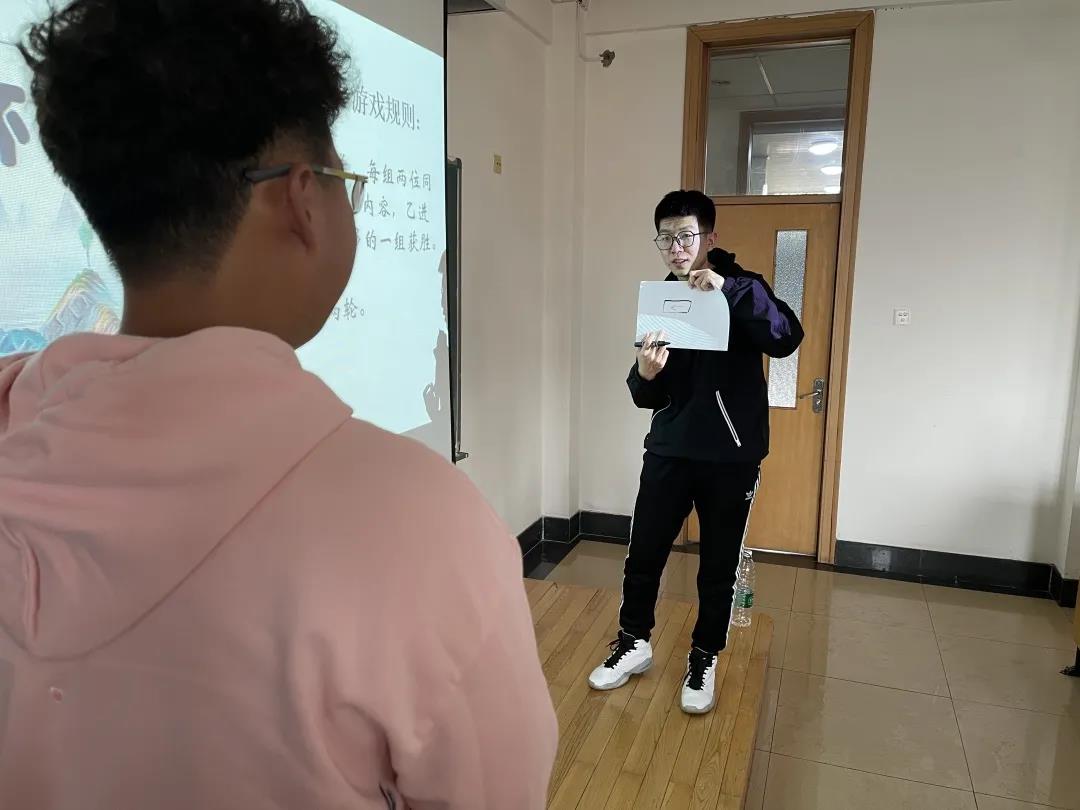 齐一先同学带来的《你应该努力奋斗,而不是随便将就》演讲,使同学产生情感共鸣。接下来通过“叼纸杯传水”游戏和“你画我猜”游戏,同学们意识到合作共赢对于成功的重要性。