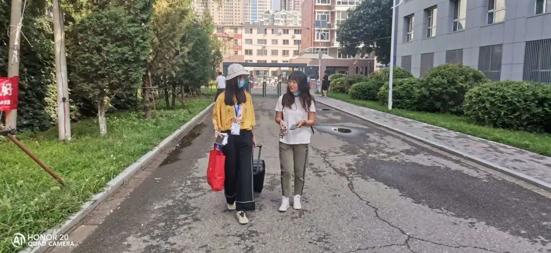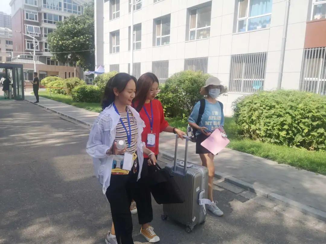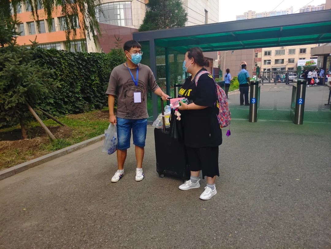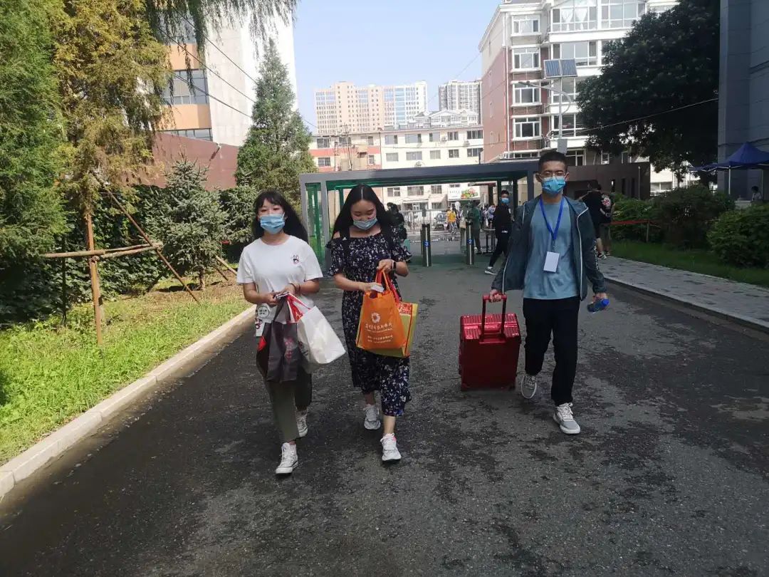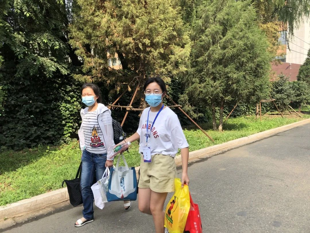 学院的志愿者们来到东校区门前,协助同学们搬运行李返回宿舍