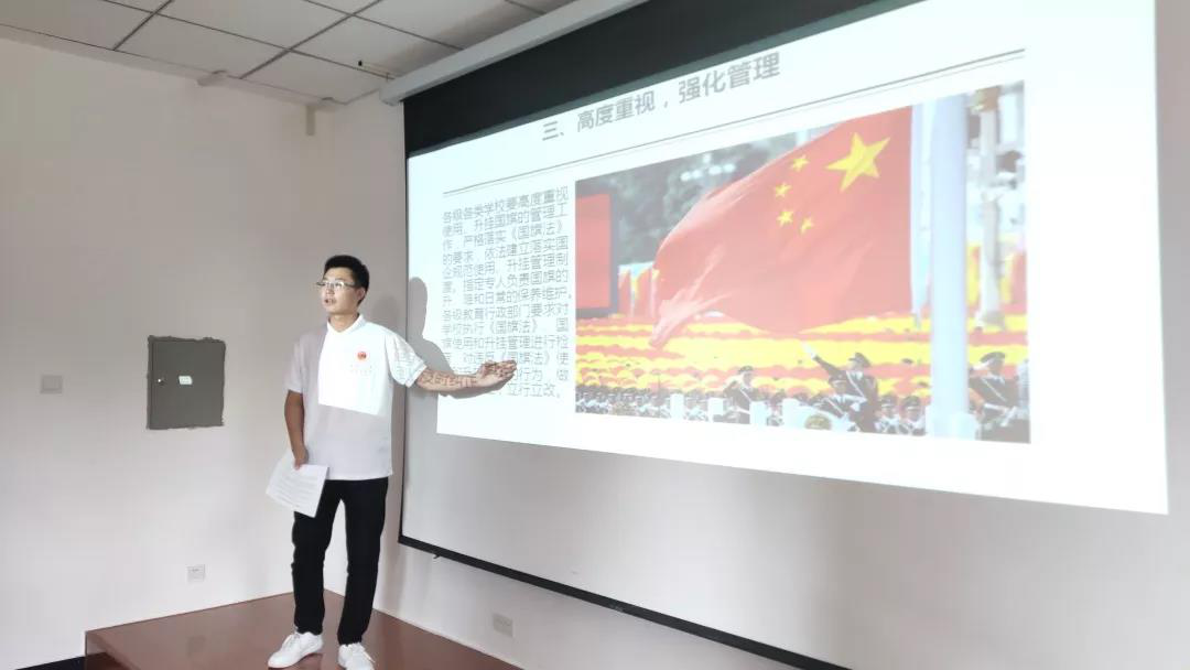 活动开始,各支部团支书简要地讲解了《国旗法》,以增强学生的国家观念和爱国意识,加强爱国主义教育,让大家深刻了解到国旗是国家的标志,代表国家的主权和尊严。接着,各支部团支书以“共青团员明确自己在建设有中国特色的社会主义的事业中应该做什么和怎样去做”为主要方向向大家说明中国共产主义青年团的职责与发展,强调党旗所指、团旗所向。