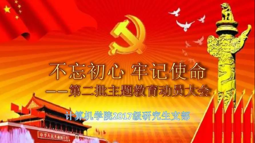 根据学校党委、学院党总支的相关工作部署,2019年9月26日11:30,计算机学院(软件学院)2017级研究生党支部在学院117教室召开全体党员大会,启动第二批“不忘初心、牢记使命”主题教育活动。