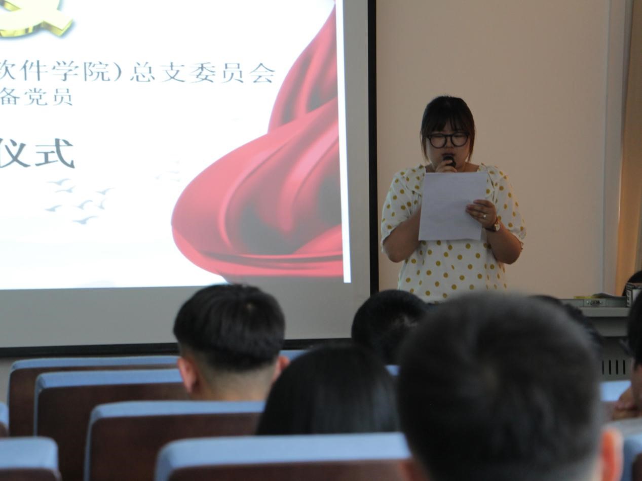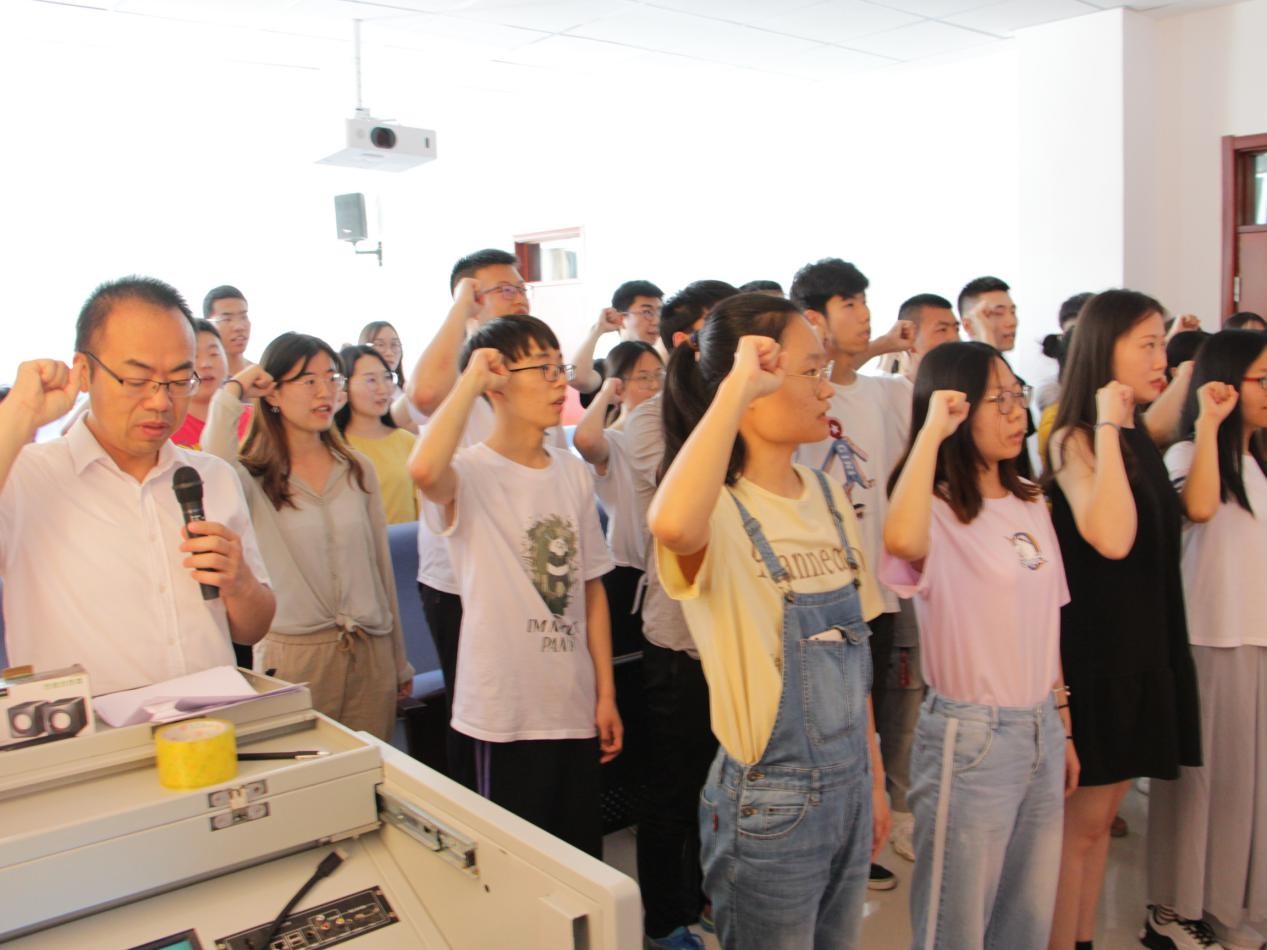 2019年6月13日下午14:30,计算机学院(软件学院)于学院117室举行预备党员宣誓仪式,本次会议由本科生第一党支部书记、辅导员赵琦主持,学院党总支书记黄翔、党总支组织委员张献国出席,以及2018年12月新发展预备党员参加。