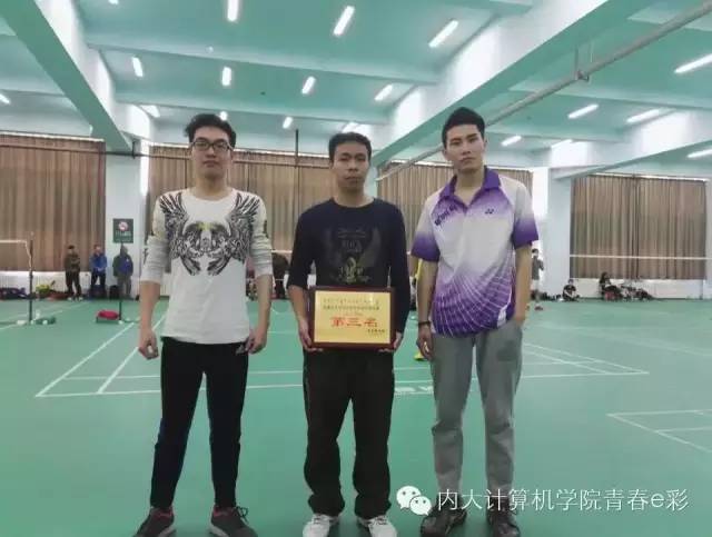 赛场上,换上了轻便运动装的同学们,变成了活力四射的运动员,尽显风采,将高远球、扣杀、吊球等各路球技展现的淋漓尽致。比赛中,每位参赛选手充分发挥顽强拼搏的体育精神,即使落后,仍每球必争,决不轻易放弃,充分展现了大学生的青春活力,整个赛场充满了拼搏和快乐的气息。 经过激烈的角逐,计算机学院(软件学院)由滕佩良、潘启纯、吴陟鹏组成的队伍获得了男子团体第三名。