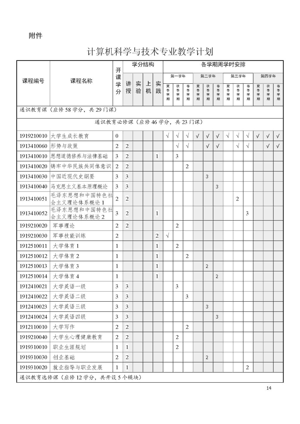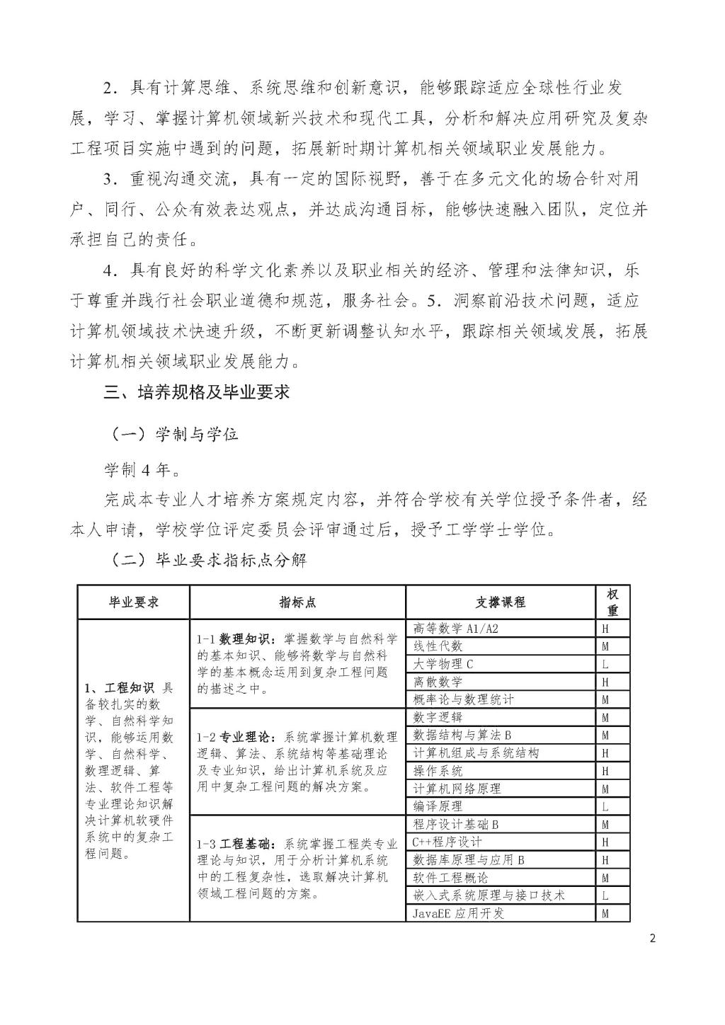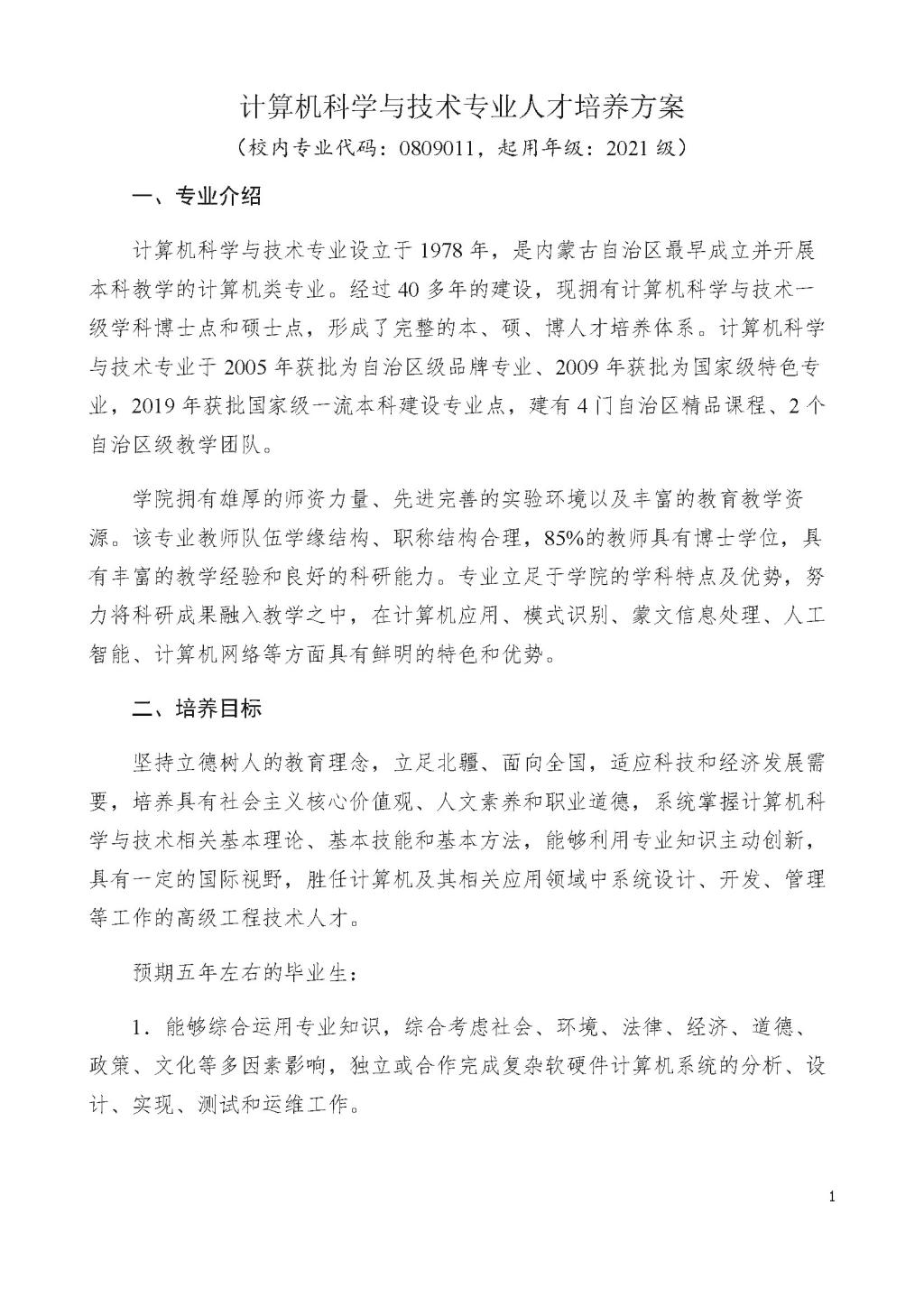 计算机科学与技术专业本科培养方案(2021版-微调)