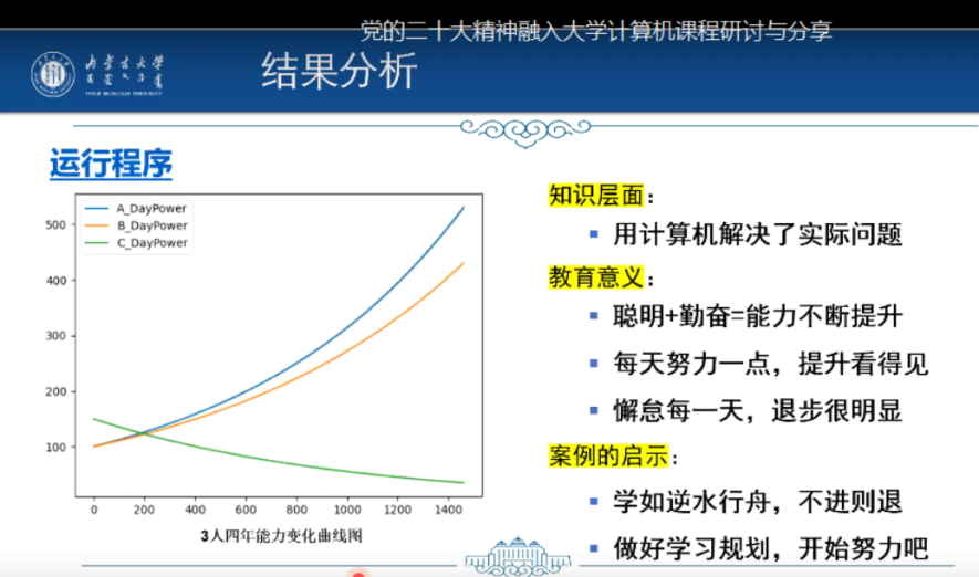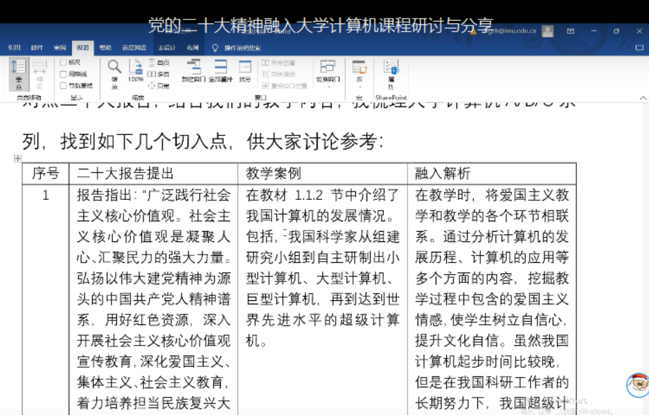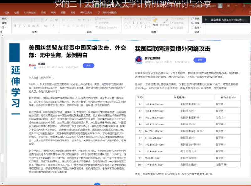 通过此次研讨与交流,课程组的老师们一致认为,《大学计算机》课程应当充分发挥课程组集体的智慧和力量,挖掘建设更多、更新、更好的思政资源与案例,充分发挥通识教育必修课的优势,将党和国家以及时代的最强音及时融入教学并传递给学生,落实好课程育人任务。