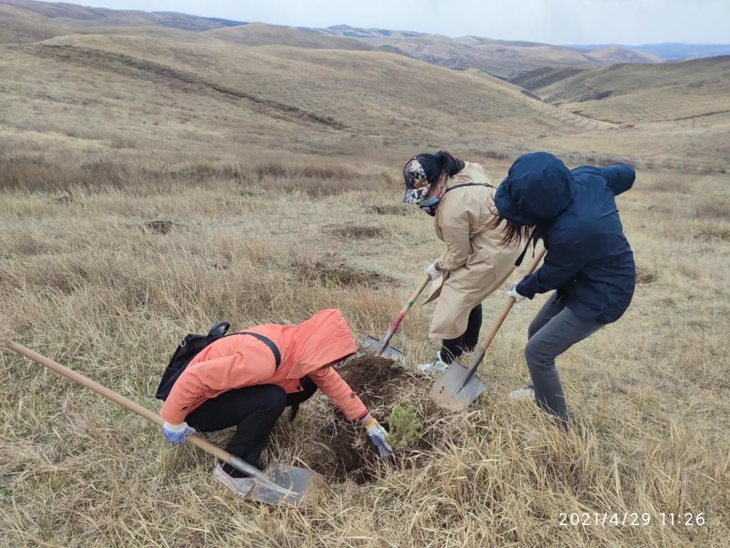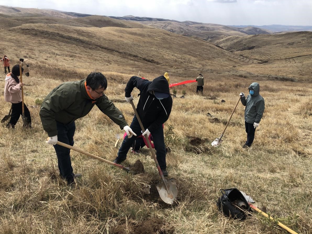 为深化党史学习教育,贯彻落实创新、协调、绿色、开放、共享的新发展理念,2021429日上午,计算机学院党委组织学院全体党员教师赴武川县蘑菇窑村开展“绿化青山、守护北疆”义务植树活动。在2个多小时的时间里,30多名党员顶着凌冽的春风、漫天的风沙,在专业绿化人员的指导下,按照先挖树坑、后栽培树苗、再浇水的流程,精心种植下200多棵松树苗。