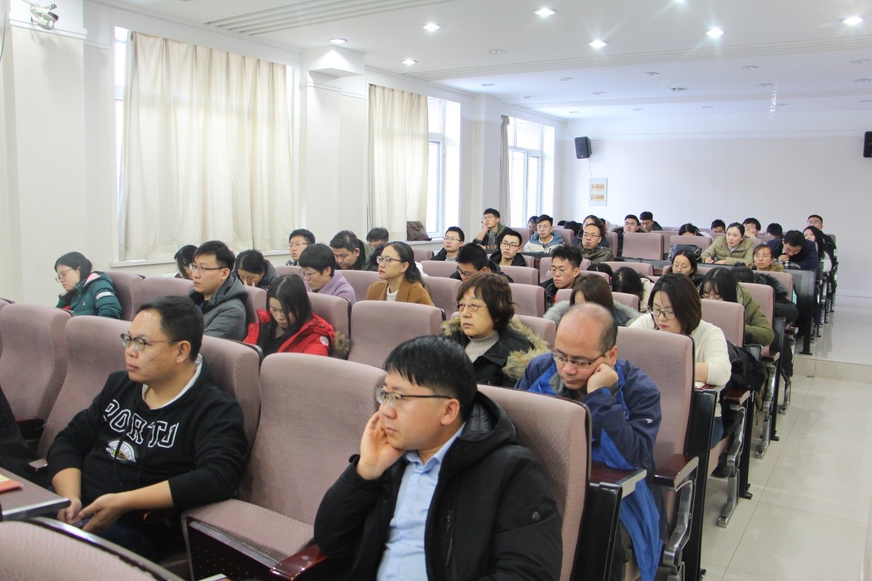 2019年12月6日下午3:00,学院党总支中心组在正北楼108号学术报告厅召开扩大会议,传达学习党的十九届四中全会精神。党总支书记黄翔主持学习会,学院中心组成员、各党支部书记及委员、师生党员共80多人参加。