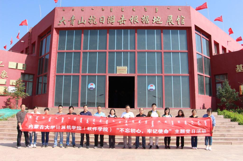 中华人民共和国成立70周年前夕,为了深入学习贯彻习近平总书记新时代中国特色社会主义思想,丰富支部活动内容,扎实开展好“不忘初心、牢记使命”主题教育,2019928日下午,计算机学院(软件学院)党总支书记黄翔、副院长赵俊峰、孙涛带领教工和学生党员到大青山抗日游击根据地展馆参观学习。