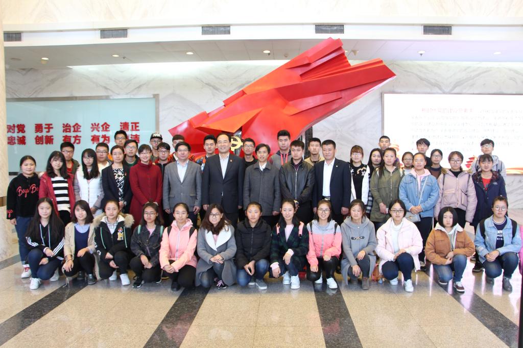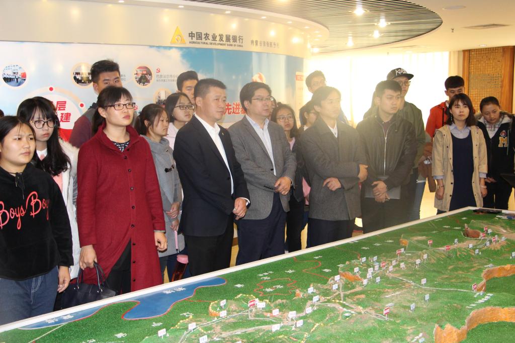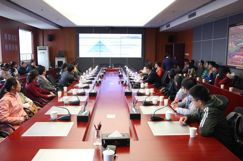 活动开始,中国农业发展银行内蒙古分行人事处处长吕永清首先带领各位领导、同学参观了该行近年来系列党建工作成果展,并对17年该行党支部系列党日活动的开展情况及取得的成果向大家作出简要介绍。我院党总支李书记也就我院党员发展、人才培养、学生思想政治教育工作中收获的经验进行了分享。随后,我校代表与银行相关负责人召开了座谈会。会上,与会人员就校企合作在党建及人才培养工作中的重要意义及开展校企合作的具体方式方法进行了讨论。会议中,吕处长向大家详细介绍了该行的现状、发展前景、人才培养方案及人才需求等情况。我院团总支书记刘雪峰老师针对历届大学毕业生在该行的发展现状等情况向银行负责人进行了详细了解。会后,银行行长、相关负责人与我校师生代表在党旗下合影留念,活动圆满结束。